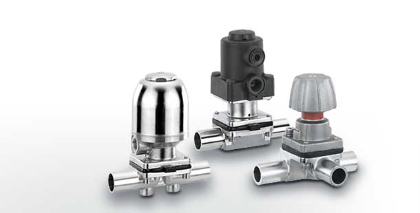 卫生级隔膜阀主要用于制药、食品饮料行业的无菌工艺段。这些阀门也可以用于在半导体和微电子领域对超纯介质的处理和分配,以及精细化学品领域。根据所选择的版本,它们适用于超纯水(注射用水),超高纯度化学品,生物制药的中间和最终产品,食品加工和化学工业。该阀门可以进行灭菌和高压灭菌,也成功地用作无菌区域的流量控制阀。